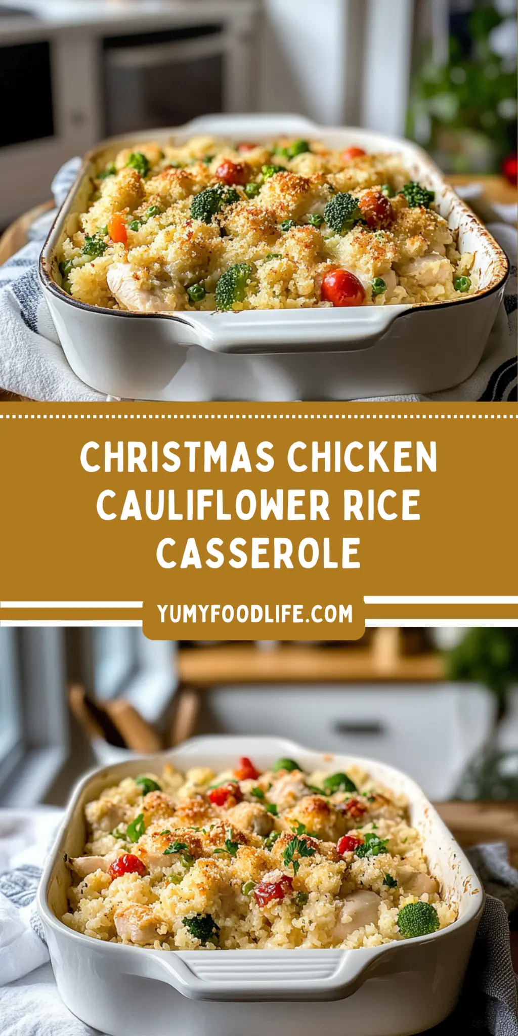This Christmas Chicken Cauliflower Rice Casserole is ready to dazzle your holiday gatherings with ease and deliciousness.